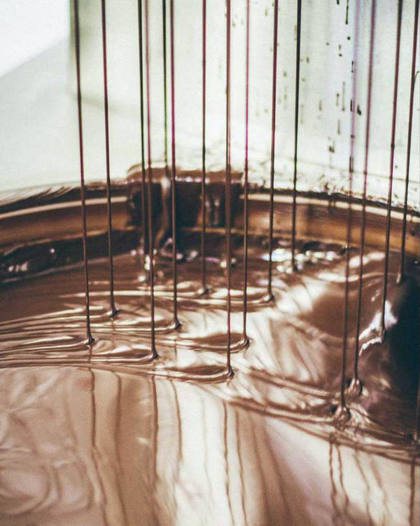 What does it mean to conche? We’re stirring and aerating the chocolate for an extended period of time to evaporate volatile oils and excess acetic acid to allow the flavors to saturate the cacao butter more completely, bringing out delicious depth in every batch.